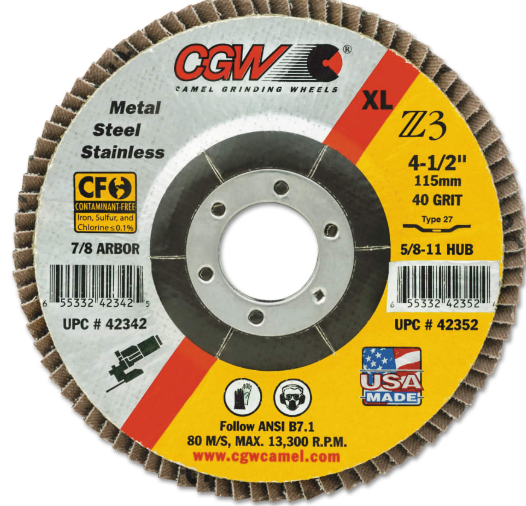 Prem Z3 Reg T29 Flap Disc, Regular, 4″, 60 Grit, 5/8 Arbor, 15,300 rpm
