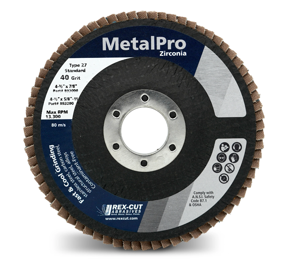 Rex Cut MetalPro Zirconia Flap Disk Type 27 4 1/2″ x 7/8″ 60gr (10/Box)